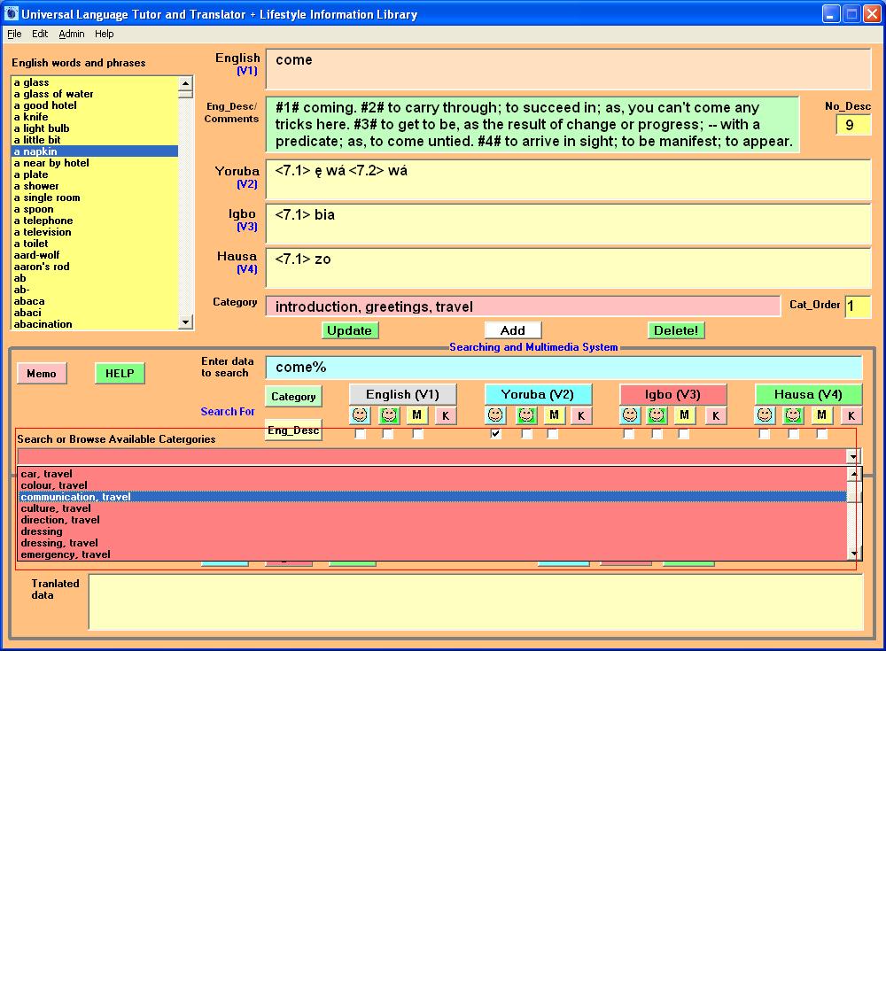 You can use category to create structured searches that are related to "Travel", "human body", "emergency"